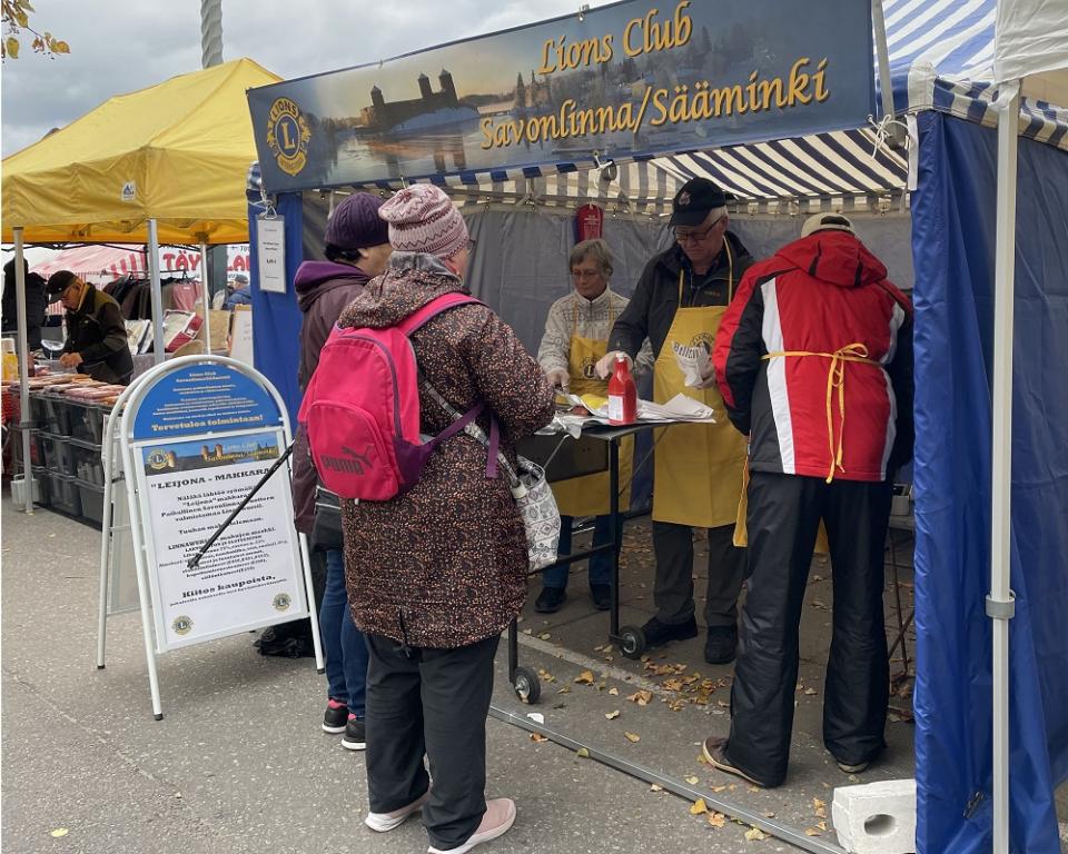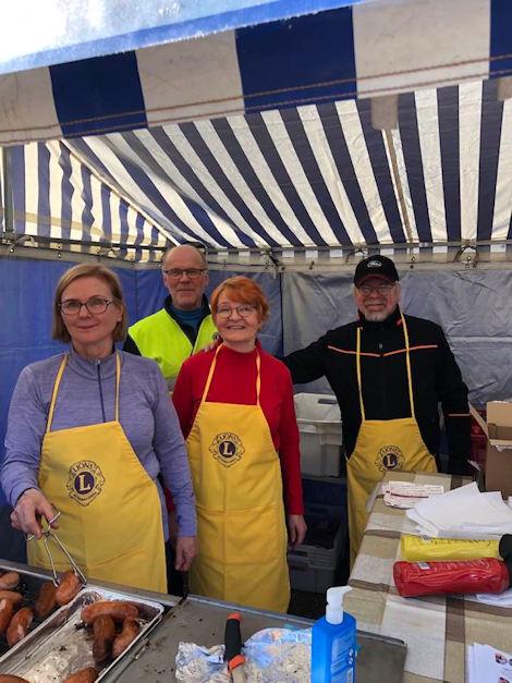 LC Savonlinna/ Säämininki myy grillimakkaraa Tuomaanmarkkinoilla. Tuotto hyväntekeväisyyteen.