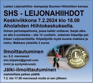 Ennusteen mukaan pakkanen paukkuu huomenna 7.2.2024 ja joudumme siirtämään leijonahiihdot viikolla eteenpäin 14.2.2024. Mikäli olet jo ilmoittanut hiihtäjän/ hiihtäjiä kilpailuihin niin uutta…